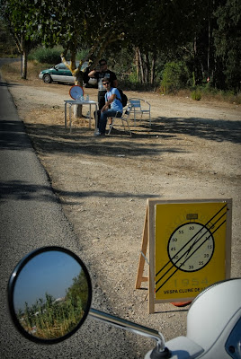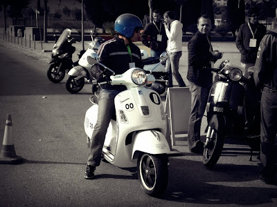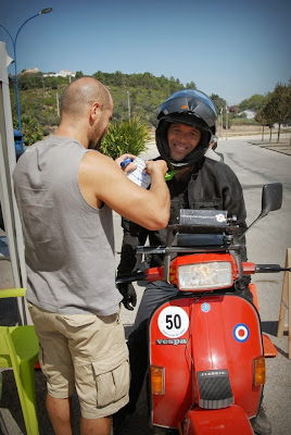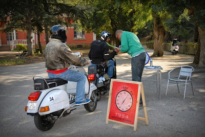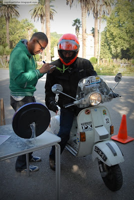 O que é que a regularidade oferece a Vespistas e Clubes? É a esta e a outras perguntas que o Paulo Simões Coelho, Vespista de décadas, viajante experimentado e pela primeira vez participante na Regularidade do Vespa Clube de Lisboa, se propõe responder. Entusiasta da ideia, levou a sério o desafio do presidente do clube, João Máximo - na imagem acima a controlar o Paulo no posto 2 - , para discorrer sobre os méritos e fraquezas da prova, da organização e do próprio formato proposto.