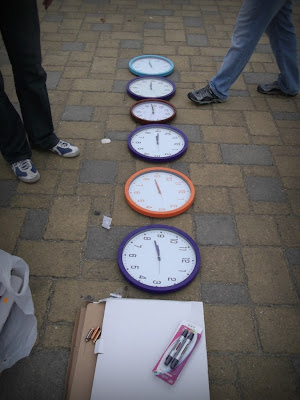 Antes da partida dava a impressão que alguns dos relógios não estavam sincronizados uns com os outros, não sei se poderia afectar o rigor na contagem de tempo? Se sim, só vejo duas soluções: investir em relógios digitais (só vale a pena se for para manter) ou comparar as horas entre os relógios no final da prova e introduzir correcções quando se calculam os tempos.