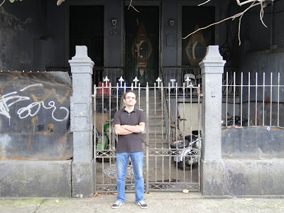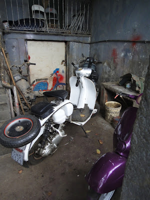 O único verdadeiro templo das scooters clássicas no Rio é esta oficina, na Rua do Ceará, visitada em dia de descanso, e fotografada do lado de cá das grades.