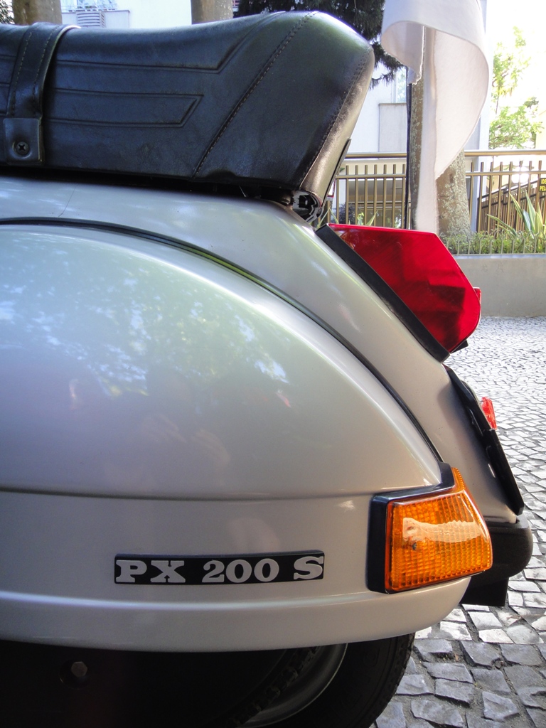 Esse mérito pela persistência pertence ao Leo, e a alguns dos seus divertidos e entusiastas confrades que tive oportunidade de conhecer no Baixo Gávea, onde foi possível reunir três PX200S brasileiras. O número de Vespas com punhos rotativos aqui é inversamente proporcional ao nível do entusiasmo dos seus proprietários.