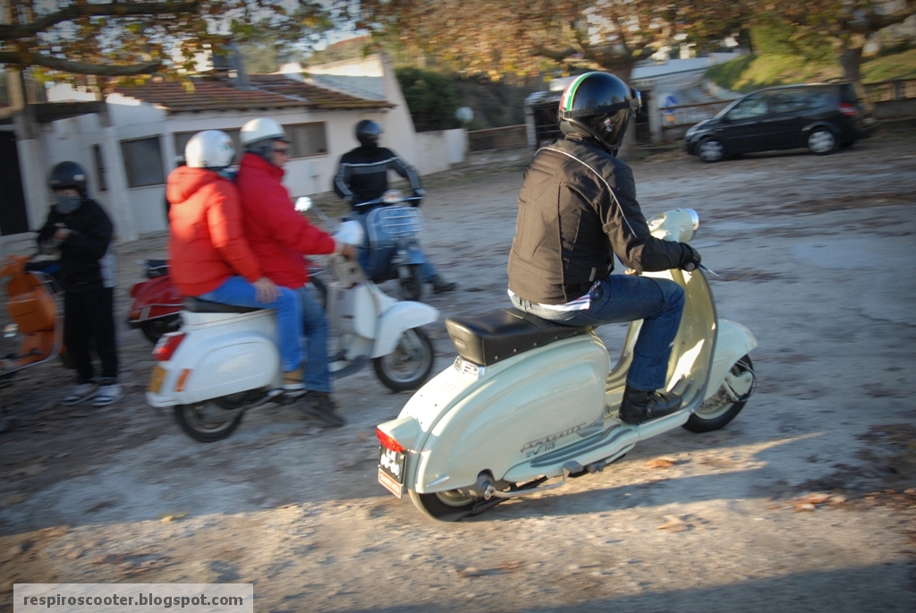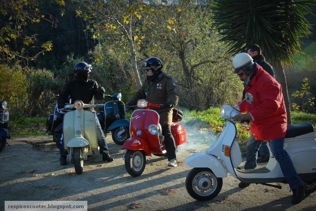 Uma conjugação feliz de disponibilidades fez com que pudesse regressar depois de 2009, dividindo agora os caminhos para a Figueira da Foz com um grupo de velhos amigos que há muito não se reuniam. Duas Vespa PX, uma LML e duas GTS 300 a combater a massa de ar frio num dia luminoso de inverno. À noite, no regresso, a partilha foi ainda mais literal: dividi a faixa de rodagem e o potente farol da minha Bianca com o Júlio, ocasionalmente de volta às scooters na cega PX bunny style do Hugo Oliveira.