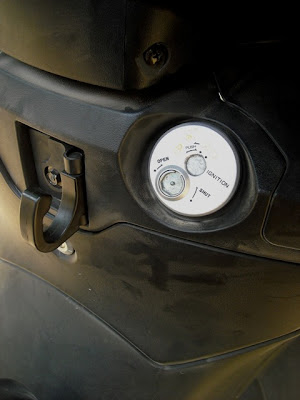 O desenho é marcado pela frente com dupla óptica bem rasgada ao estilo oriental e por um ecrã alto, complementado por uma extensão lateral ao nível dos punhos muito útil na sua protecção.