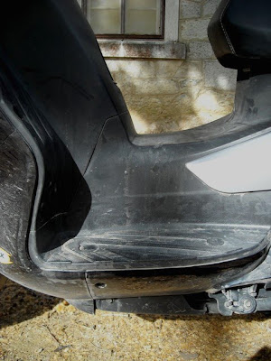 A traseira é difícil de distinguir da concorrente Yamaha X-Max, tais são as semelhanças. Um bom conjunto de pegas para o passageiro enquadram os dois farolins num arranjo que, não sendo original, é muito agradável à vista.