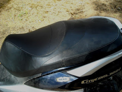 Do lado direito sobressai o avantajado escape, elemento que marca claramente, e pela positiva, o desenho da CityCom. Nas laterais insinua-se um painel em plástico claro que pretende quebrar o negro do estrado e avental, ambos não pintados. O desenho das jantes de dezasseis polegadas, em estrela de cinco pontas, sublinha a sensação de robustez geral. O painel de instrumentos combina manómetros analógicos para taquímetro, velocímetro e temperatura da água com um display digital para o odómetro e nível de combustível, para além das imprescindíveis luzes avisadoras.