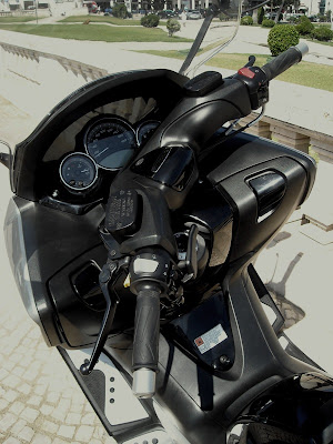 Quando desmontei, tirando o pé do ski direito, acrescentei um marcador à minha anotação mental: TMAX. Scooter ou moto ?