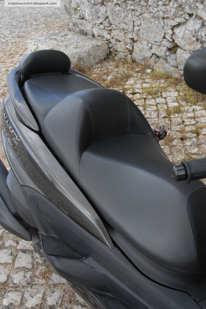 O banco do condutor tem um grau de conforto quer na forma, quer na dureza que me pareceu ideal para grandes tiradas. Não notei que deslizasse de mais ou se tornasse incómodo na junção com o depósito em condução mais empenhada. Por outro lado, a altura do guiador e os ângulos com o conjunto peseiras e banco admitem que se role em total controlo de pé, o que permite esticar as pernas e descansar em andamento. Consegui fazer stints de duas horas e meia sem desconforto, o que é um tributo ao trabalho feito na ergonomia.