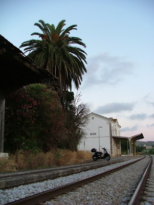 Hoje encontro paralelo entre essas antigas viagens de descoberta e curiosidade e algumas das minhas viagens de scooter. Desde que vá de scooter é raro não me sentir tentado a parar junto de um antigo apeadeiro da CP.